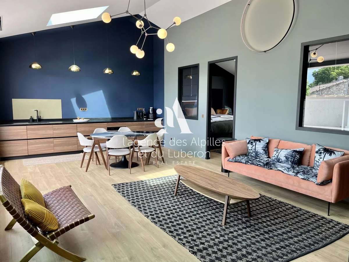 Located in the hyper center of the village of Saint-Rémy-de-Provence, let yourself be seduced by this luxury loft which offers a large terrace with panoramic view on the Alpilles, a living room with beautiful high ceiling as well as two bedrooms with bathrooms and toilets.