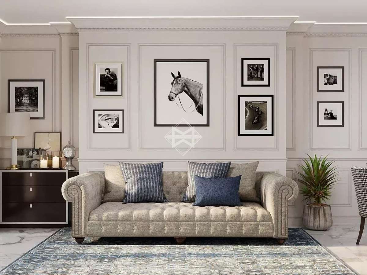 The interior design, curated by Ralph Lauren Home, combines timeless elegance with sophisticated style.