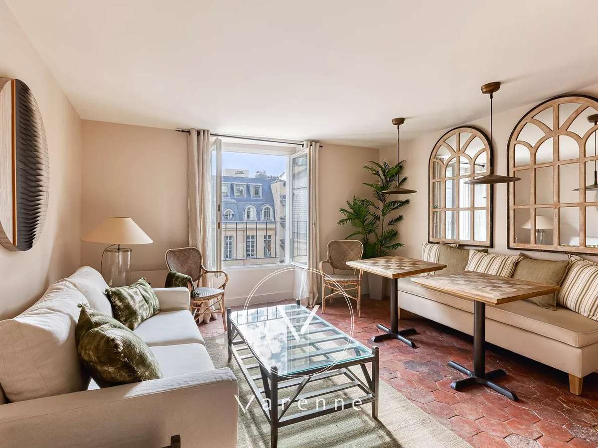Located on the fourth floor by staircase, the flat comprises an entrance hall, a living room with open-plan kitchen and views of the Hôtel de Vaudreuil, a bedroom and a bathroom.