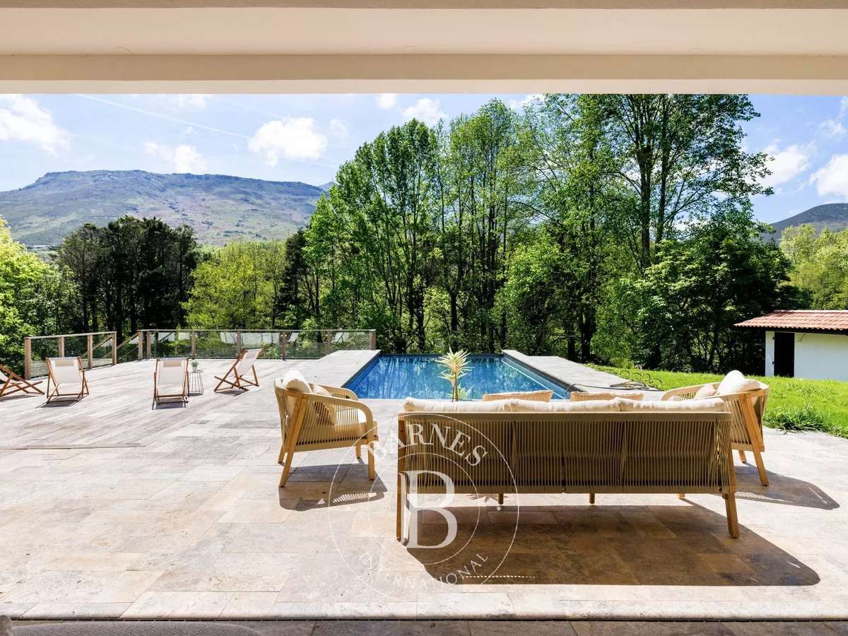 Set on a beautifully landscaped 2.25-hectare estate, the property offers an exceptional living environment, enhanced by a heated infinity pool with panoramic views over the forest and surrounding hills, including towards La Rhune.