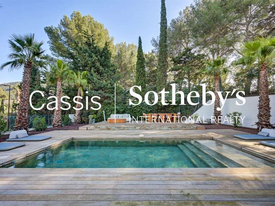 Exclusive listing – For sale in Cassis, renovated 246 sqm villa set on 1,600 sqm of land with swimming pool, landscaped garden, pétanque court, independent apartments, and rooftop terrace with sea glimpse.