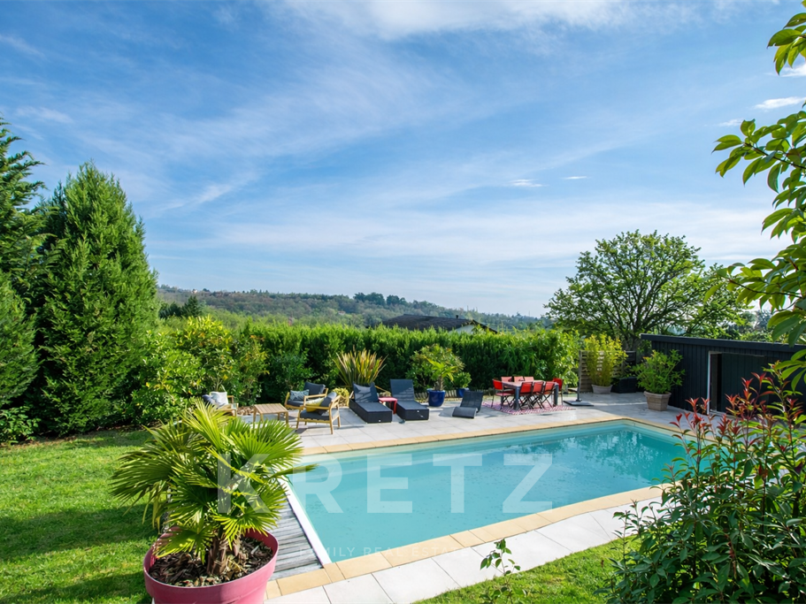 In a sought-after residential area of Charbonnières-les-Bains, in absolute peace and quiet and with an uninterrupted view of the Bois de Serres, this delightful stone house, built in the 1970s, underwent a complete renovation in 2020, combining elegance, comfort and practicality.
