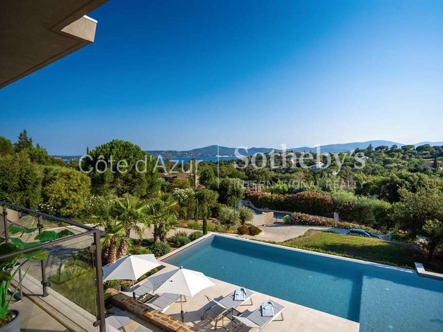 This stunning modern villa, designed by renowned architect René Claude Leandri, is perched on an elevated hillside within the exclusive Domaine Bartole de Beauvallon, offering breathtaking, uninterrupted views of the Golfe de Saint-Tropez and the surrounding natural beauty.