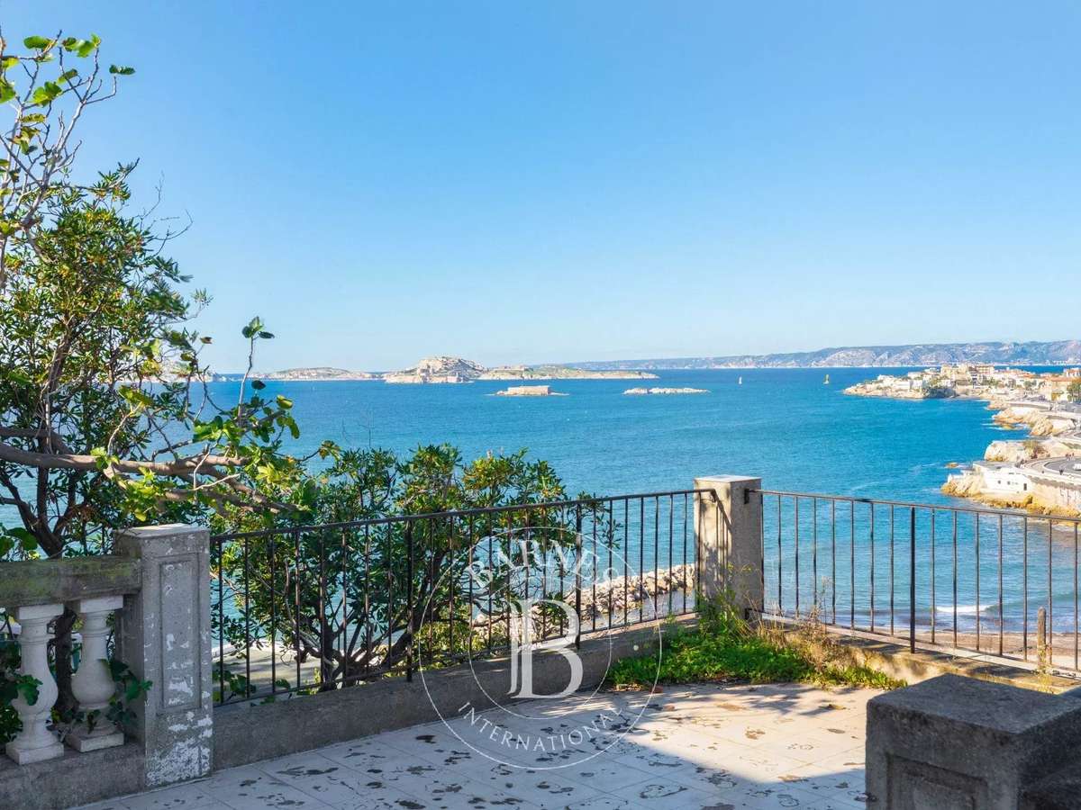 In an exceptional position overlooking the Corniche Kennedy in Marseille's 7ᵉ arrondissement, Barnes International is offering a superb Maison de Maître with a total floor area of 337m² (445m² with terraces) that is entirely in need of renovation.Boasting breathtaking views of the sea and the Frioul Islands, a plot of around 1000m² with a garden suitable for a swimming pool and access down to the sea, this residence, built in 1889, offers real potential for renovation.The house currently comprises three different dwellings, each with its own independent access: - The main part of the house (225m² over two floors with a large west-facing terrace) - A 20m² studio flat on the first floor - A 54m² flat on the second floor The generous volumes, high ceilings and period features give the property a rare character.