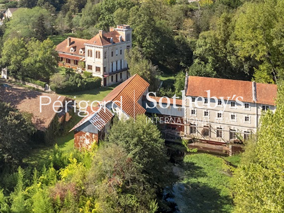 Incredible property for sale, less than 10 minutes from all amenities in Mussidan, right on the water! Charming manor house with almost 375 m2 of living space, to be brought up to date, fully renovated guest house of around 80 m2 and the water mill, former flour mill, with a total of almost 900 m2 capable of accommodating several projects...