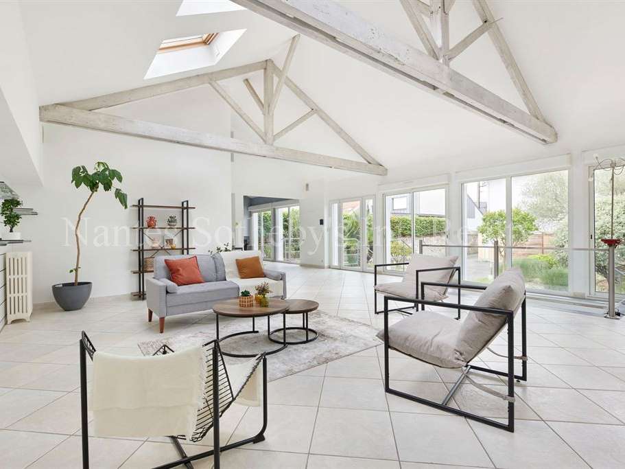 Nantes Sotheby’s International Realty offers you this single-storey house, renovated in 2002 with a living area of 275 m2 It includes a large living room of 67 m2 with insert, an office, a kitchen opening onto a terrace, as well as three bedrooms, including one with private bathroom.