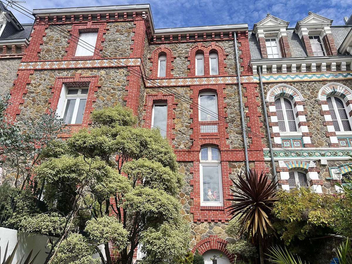 SBI EXCLUSIVITY, FOR SALE, SAINT BRIEUC, ST MICHEL district, Beautiful 1900s town house (200m2 living space), renovated in 2020, set in 346m2 of enclosed land, comprising: entrance hall, lovely living room (46m2) with fireplace opening onto veranda and south-facing terrace, fitted kitchen with access to garden, storeroom, wc; on 1st floor: landing, 2 bedrooms, one with study and skylight, bathroom with shower and wc; 2nd floor: landing, 3 bedrooms, shower room with wc; ground floor: large garage, workshop, utility room, cellar; gas central heating, BEAUTIFUL VOLUMES, CHARM, BEAUTIFUL FEATURES, NEIGHBOURHOOD LOOKING FOR.