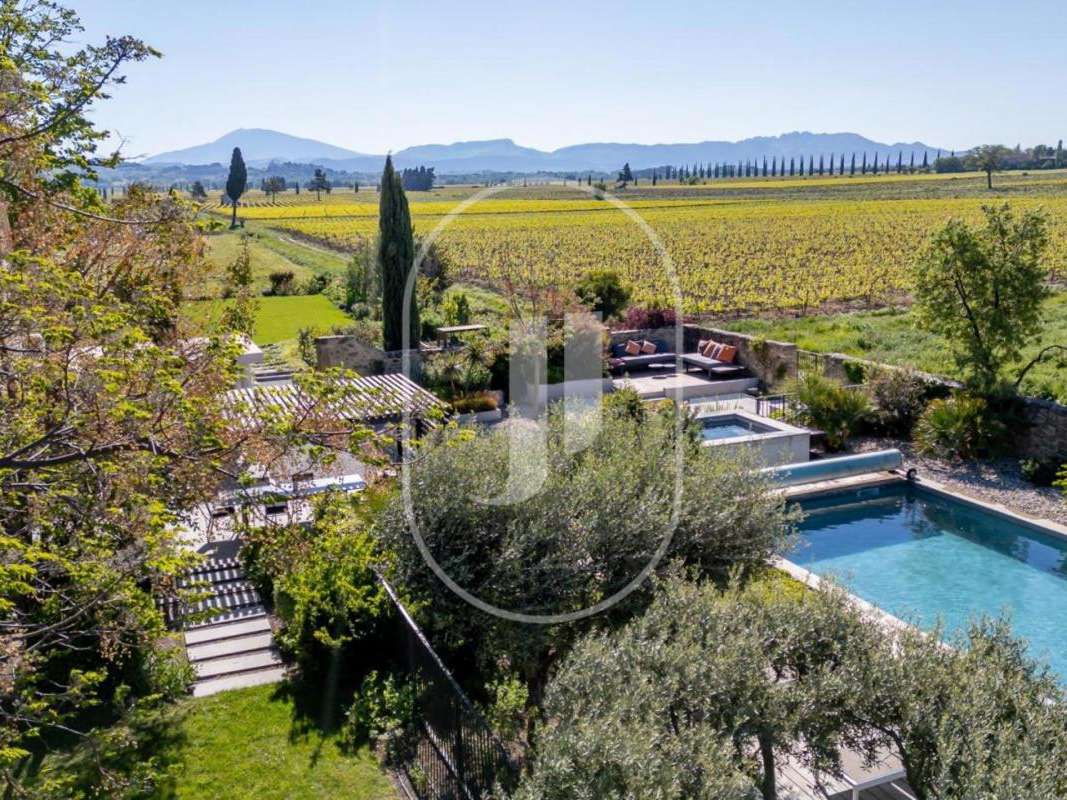 Situated in the heart of the vineyards and just a stone's throw from a charming, sought-after village, this large restored Provencal farmhouse on a plot of 8390m2 offers an exceptional living environment, with breathtaking views of Mont Ventoux, Saint Amand, the Dentelles de Montmirail and the surrounding vineyards.