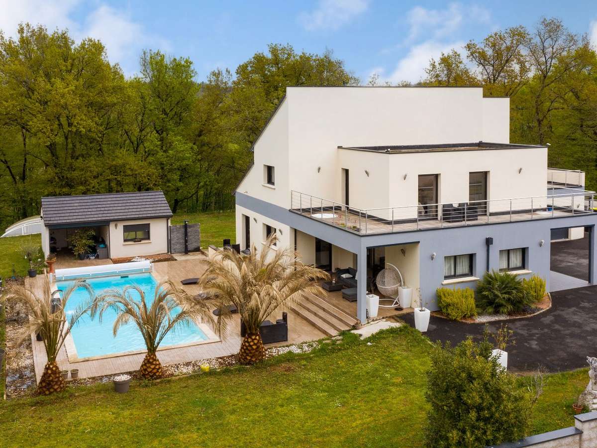 Located in the hills above Brive, in a secluded residential area, this exceptional contemporary villa is a rare architectural achievement, combining spectacular volumes, fine materials, and high-end amenities.
