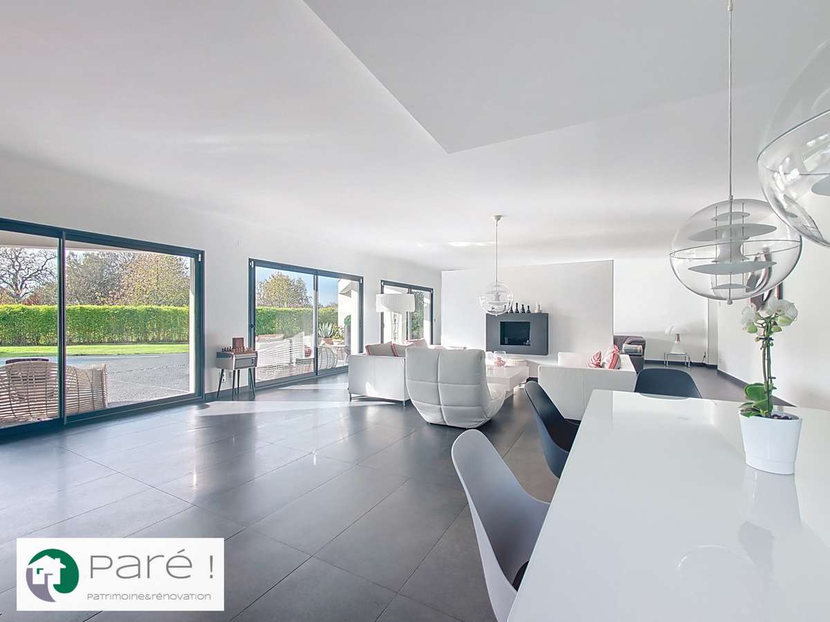 A spacious entrance hall leads to a SPLENDID AND BRIGHT 85m² LIVING ROOM, opening onto the terrace and swimming pool, perfect for entertaining family and friends in a friendly and comfortable atmosphere.
