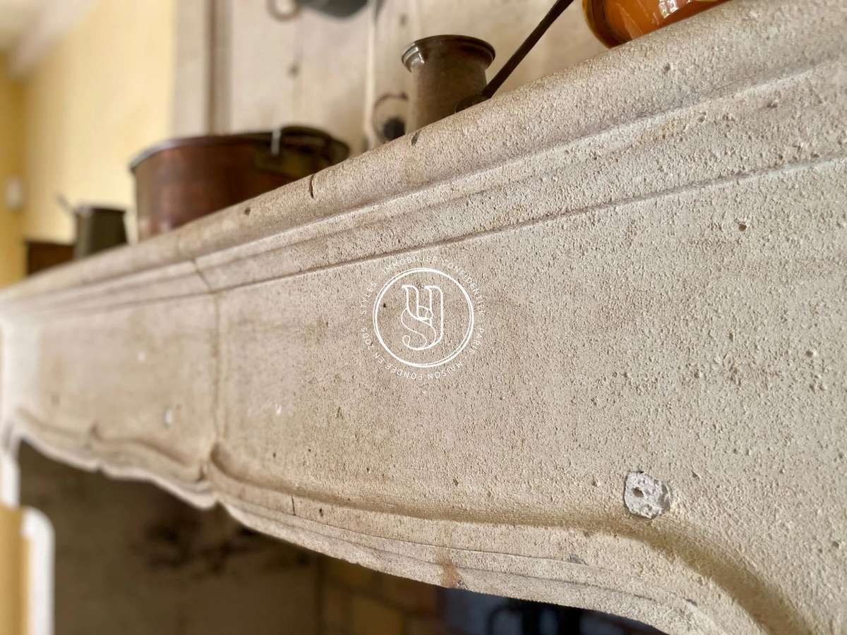 It comprises an elegant separate kitchen and a vast living room of around 100 m², enhanced by a stone fireplace and magnificent old beams that give the property a rare and timeless cachet.