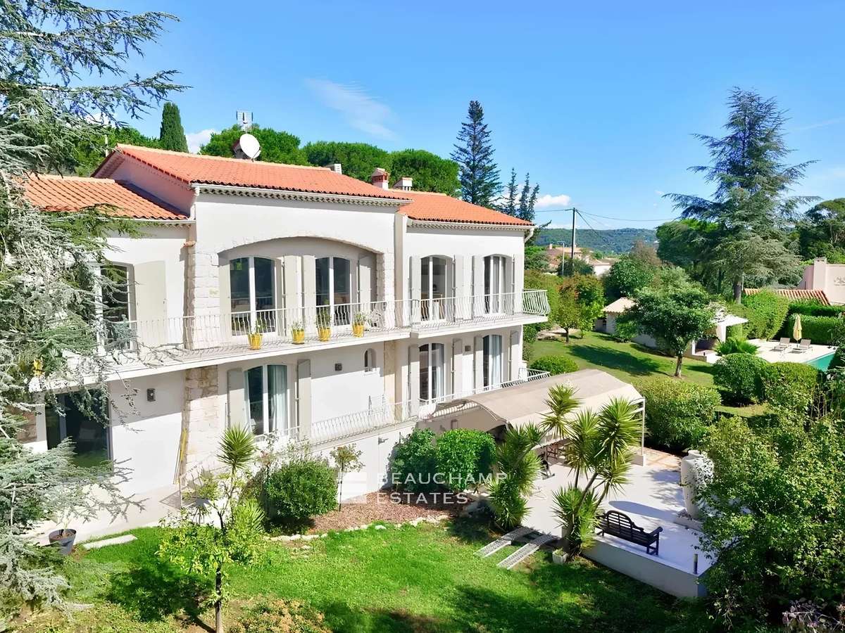 Close to Mougins and overlooking the area, this magnificent neo‑Provençal villa is located near the authentic village of Mougins, in a sought‑after residential neighborhood.
