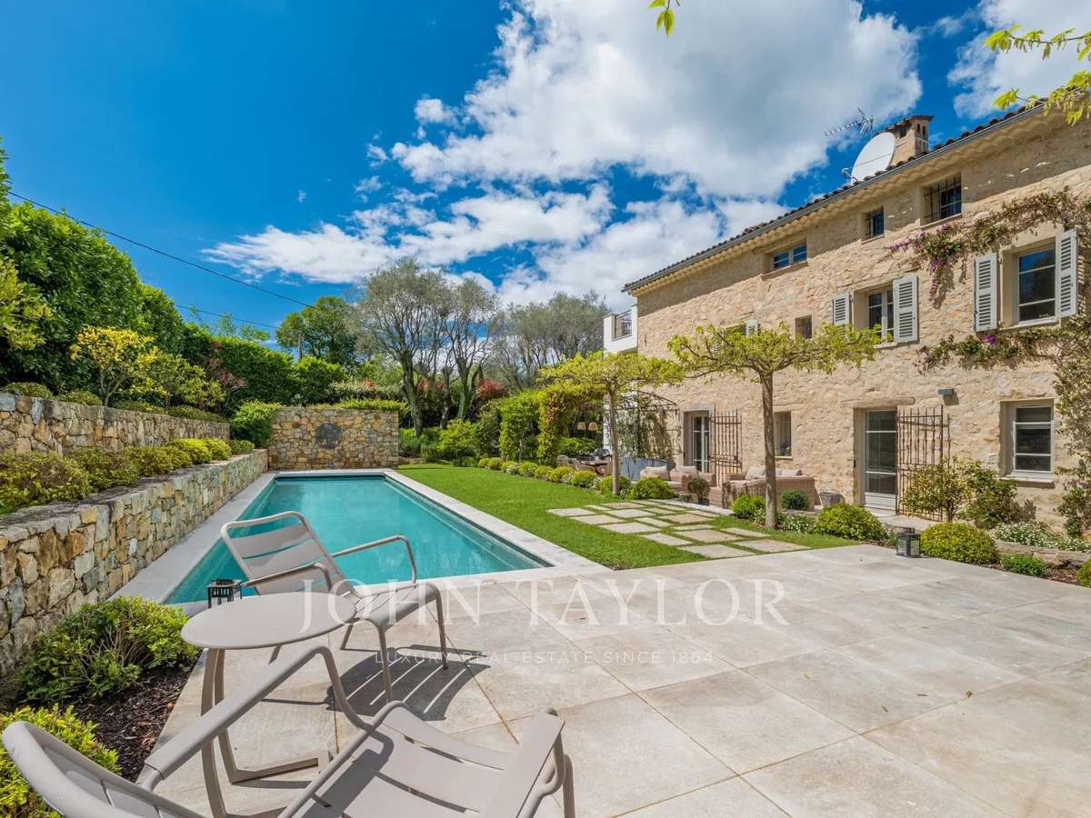 Tastefully restored 18th-century stone property with swimming pool with a mature garden in a good neighbourhood walking distance to Valbonne village.