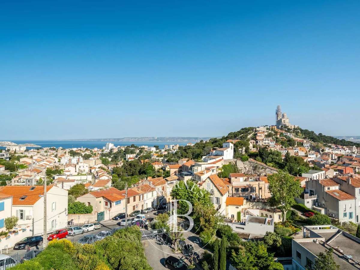L’espace de réception, d’environ 100 m², comprend un double salon, une salle à manger et une cuisine indépendante entièrement aménagée.Les volumes généreux et les larges baies vitrées baignent l’ensemble de lumière et s’ouvrent de plain-pied sur la terrasse, véritable prolongement naturel des pièces de vie.Depuis cet extérieur hors normes, le panorama est saisissant : Notre-Dame de la Garde en ligne de mire, les îles du Frioul, la Côte Bleue, ainsi qu’une vue dégagée sur les collines marseillaises, du Massif de l'Étoile jusqu’au Mont Puget.L’espace dédié aux chambres se compose d’une suite parentale de 33 m² avec vaste salle de bains et rangements sur mesure.Une seconde chambre bénéficie de sa propre salle de bains, tandis qu’une troisième dispose d’une salle d’eau indépendante.À l’étage, une quatrième pièce ouverte complète l’ensemble, prolongée par un espace véranda idéal pour un bureau ou une salle de sport, offrant l’une des plus belles perspectives sur la ville.Un garage triple vient parfaire ce bien d’exception.Disponible en mars.
