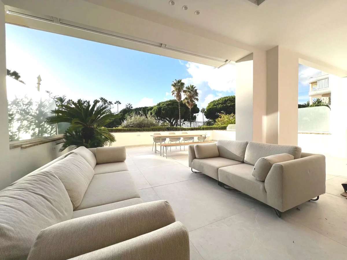 Croisette face au Port Canto, dans une belle résidence avec gardien, superbe appartement 4P de 100 m² en Rez de chaussé surélevé, entièrement rénové avec de belles prestations, et bénéficiant d’une terrasse d’environ 60m² orientée Sud-ouest .