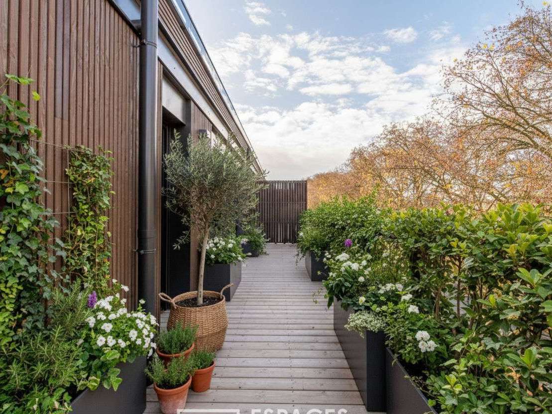La terrasse de 26 m² est un véritable atout, offrant une vue sur la Maine, entourée des arbres du Quai Gambetta.