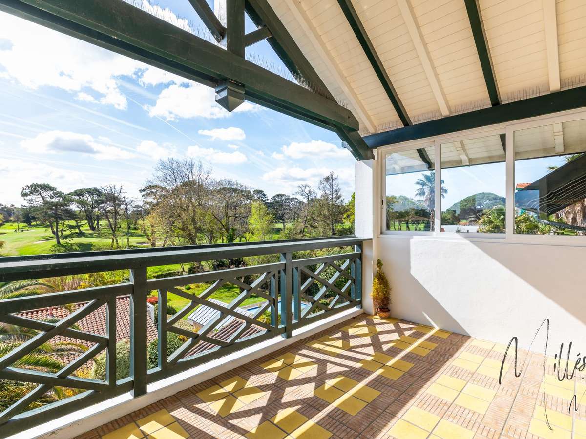 Vue exceptionnelle sur le Golf du Phare pour ce bel appartement de de 110m2 situé au 2° et dernier étage d'une superbe demeure de caractère à deux pas de l'océan avec cave et garage fermé.Ouverte sur une belle terrasse de 12m2, la pièce à vivre climatisée offre de beaux volumes avec son plafond cathédrale et ses poutres apparentes offrant espace et luminosité.Une cuisine indépendante, une grande suite parentale climatisée avec sa salle de bains, deux chambres avec chacune sa salle d'eau et deux toilettes complètent ce bien de qualité idéalement situé aux portes de Biarritz à proximité des commerces, de la plage et du Golf.Contacter Véronique Dessauce au 05 59 48....Honoraires inclus de 5.09% TTC à la charge de l'acquéreur.