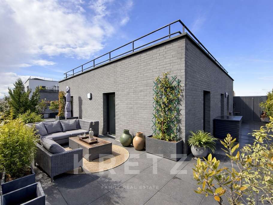 Véritable signature du bien, une spectaculaire terrasse de 105 m² entoure l’appartement sur trois côtés, offrant un exceptionnel espace de vie en roof-top.