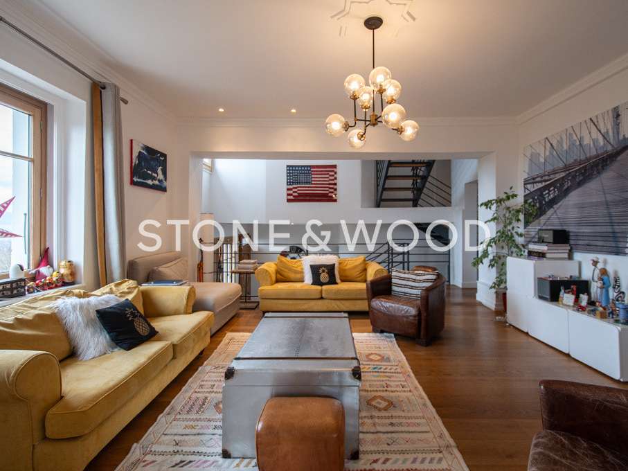 Au cœur d'une bâtisse de 1900 chargée d'histoire, ancien « Hôtel des Alpes » entièrement réaménagé en logements, ce vaste appartement de type 6 d'environ 204 m² habitables se vit comme une maison, avec son organisation en 5 demi-niveaux et son jardin privatif d'environ 1 033 m².