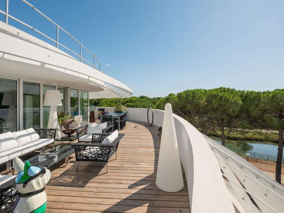Toutes les pièces s’ouvrent sur la terrasse, véritable prolongement de l’espace de vie, idéale pour recevoir, se détendre ou admirer les couchers de soleil sur le Ponant.
