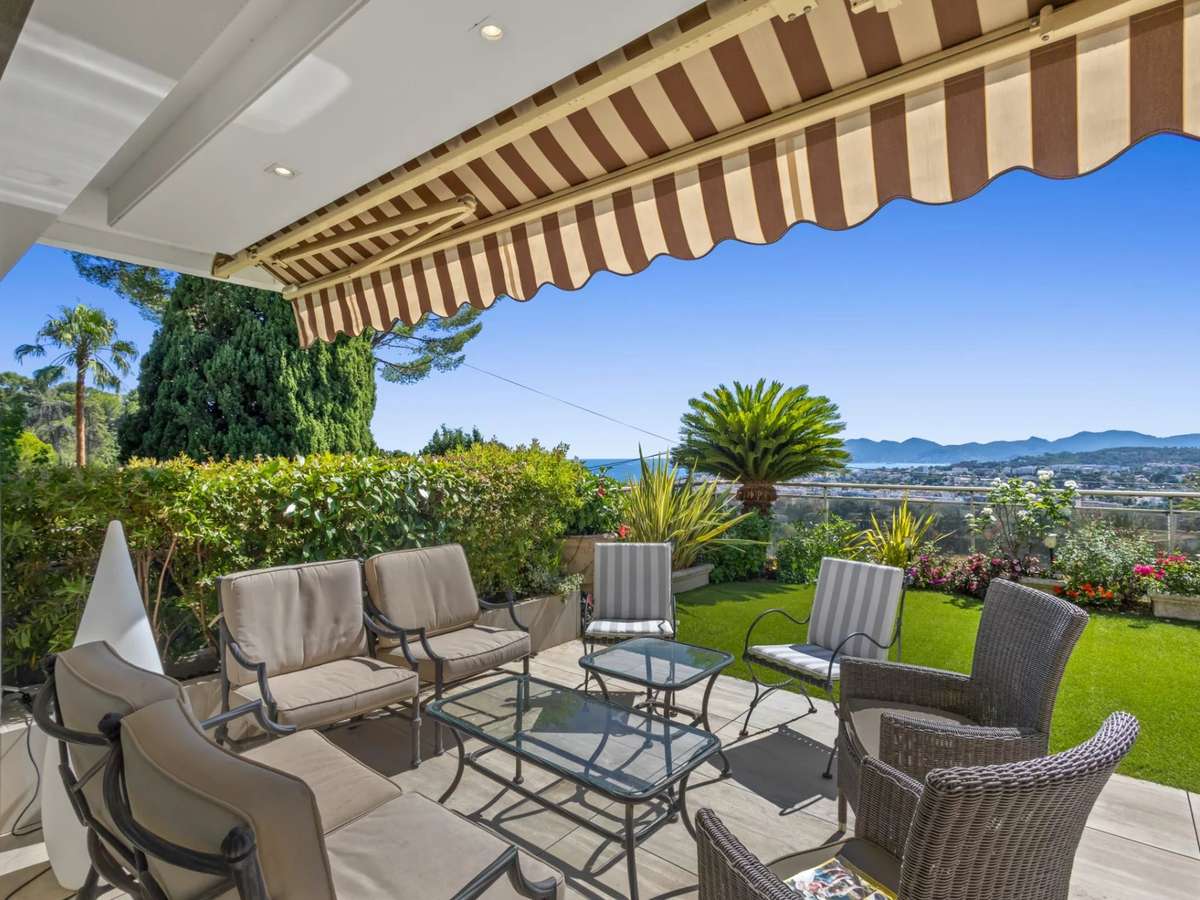 Situé sur la plus prestigieuse adresse du Cannet, dans une petite résidence avec 7 Copropriétaires, magnifique appartement-villa d'environ 125m2 composé de 4 pièces avec une terrasse jardin d'environ 75m2.Vous profiterez d'un hall d'entrée avec placard vestiaire, vaste living ouvert sur la terrasse avec une vue sur le bassin cannois et l'esterel, cuisine indépendante entièrement équipée, une véranda avec jardin au calme parfait.