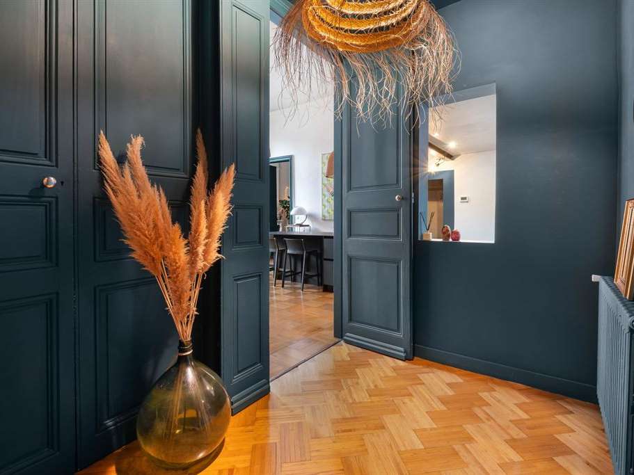 Installé au 1er étage, il séduit immédiatement par la générosité de ses pièces, sa hauteur sous plafond spectaculaire de 4,30 mètres et son atmosphère à la fois élégante et chaleureuse, typique des biens de caractère.