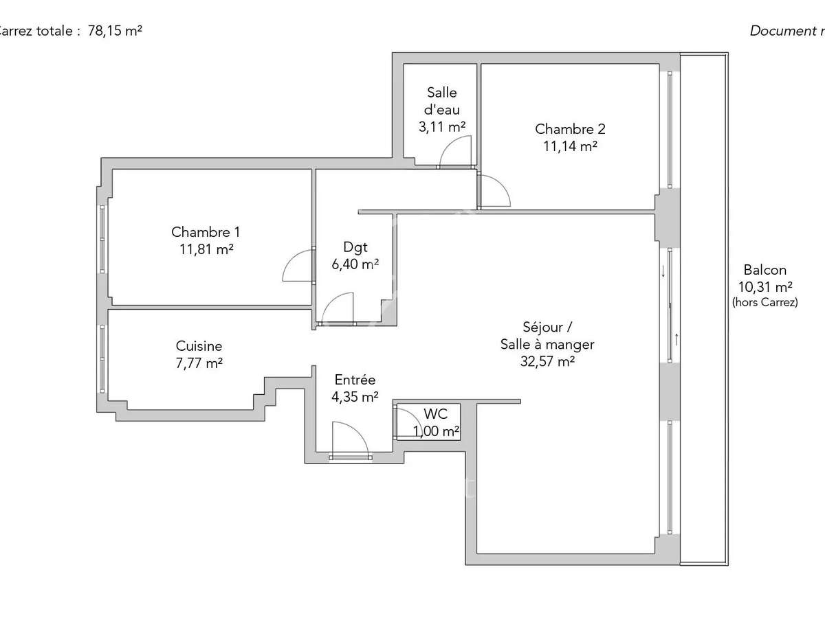 - Double séjour lumineux avec accès à un balcon de 10m²