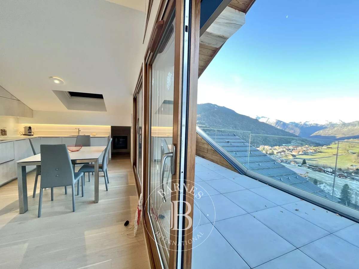 L’accès direct à la terrasse permet de profiter de l'extérieur dès que les beaux jours arrivent, tout en offrant une vue spectaculaire sur les montagnes.La cuisine, moderne et bien agencée, dispose d’un coin repas convivial, idéal pour partager des moments en famille ou entre amis.