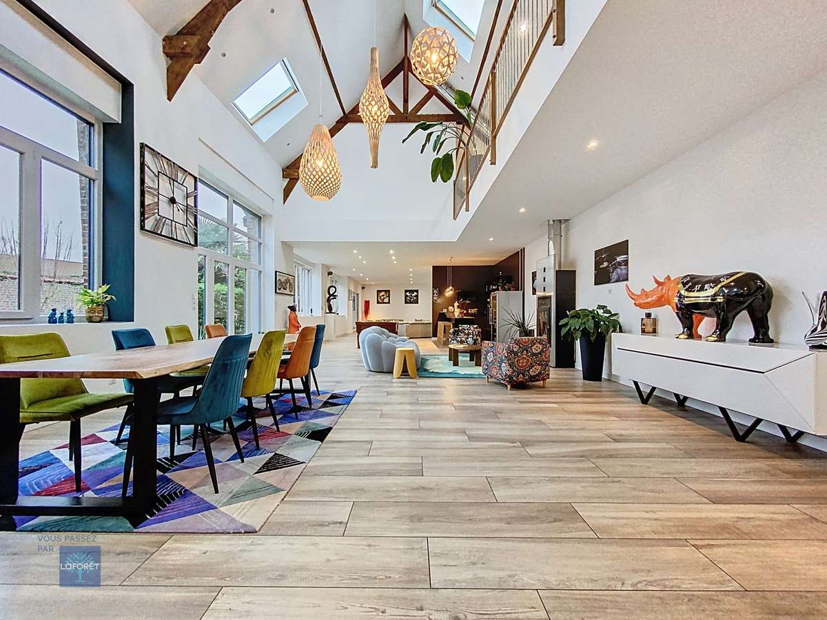 Dès l'entrée vous découvrirez une pièce de vie somptueuse de 164m², sublimée par une hauteur sous plafond de 8 mètres. Baignée de lumière cet espace ouvert accueille une cuisine aménagée et équipée.