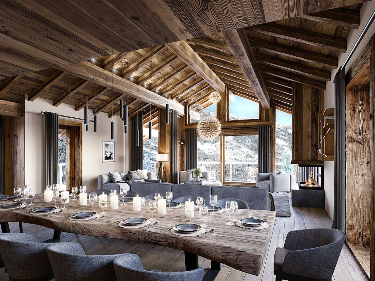 Le dernier niveau offre une vaste pièce de vie de 72 m² avec cuisine ouverte, séjour cathédrale et terrasse panoramique sur la vallée des Encombres et le sommet du Cochet.