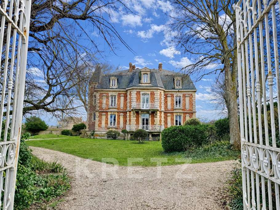 Édifié en briques et pierre dans un élégant style néo-Louis XIII, le manoir séduit par son architecture raffinée : tour carrée accolée, balcon et perron aux ferronneries ouvragées, pierres sculptées, ainsi qu’une toiture en ardoise ponctuée de remarquables lucarnes en pierre, qui lui confèrent une silhouette noble et intemporelle.