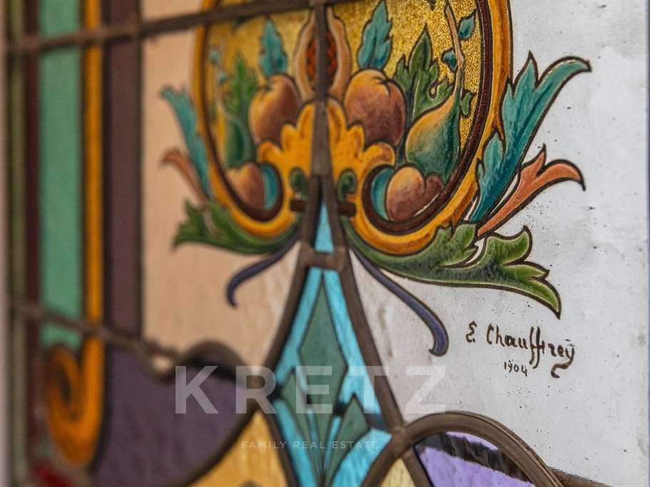 Prestations haut de gamme : ascenseur, parquets massifs, moulures, vitraux d'art, sonos intégrés...