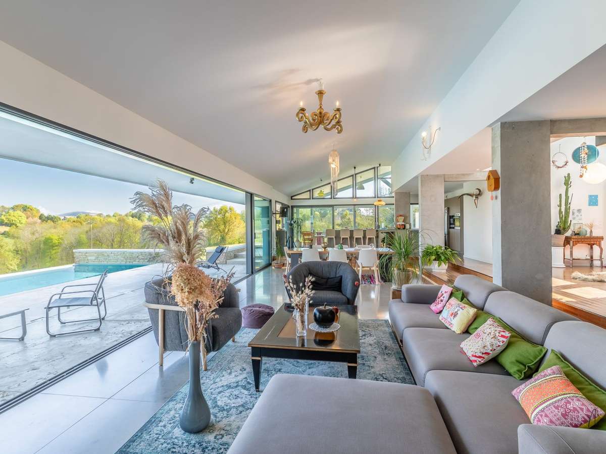 Cadre bucolique pour cette magnifique contemporaine néo basque de 320m2 avec piscine, cuisine d'été, grand garage de 200m2 et appartement indépendant à 10mn des plages de Bidart.Une vaste pièce à vivre de 130m2 se prolonge sur une immense terrasse couverte plein Sud à la vue dégagée sur la forêt et les montagnes.Baignée de lumière avec ses immenses baies à galandage, le salon, la salle à manger et la superbe cuisine avec son îlot central procurent une ambiance chaleureuse et cosy.Un salon télé, une suite parentale et un bureau complètent la partie principale du rez-de-chaussée.À l'étage, l'espace nuit propose deux autres suites avec chacune leur salle d'eau.Le rez de jardin est organisé autour d' un appartement indépendant, une salle de sport, un bureau et des toilettes.Contacter Véronique Dessauce au .Honoraires inclus de 4.98% TTC à la charge de l'acquéreur.