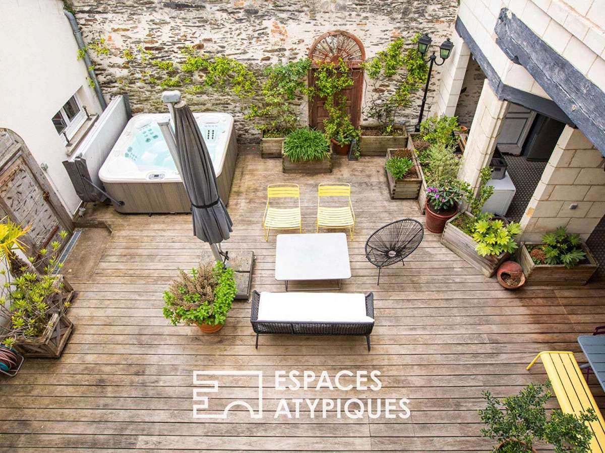 Au coeur de l'hyper-centre d'Angers, à l'abri des regards, cette élégante maison du XVIII ème siècle s'organise autour d'un vaste patio minéral et végétalisé, véritable pièce de vie à ciel ouvert.