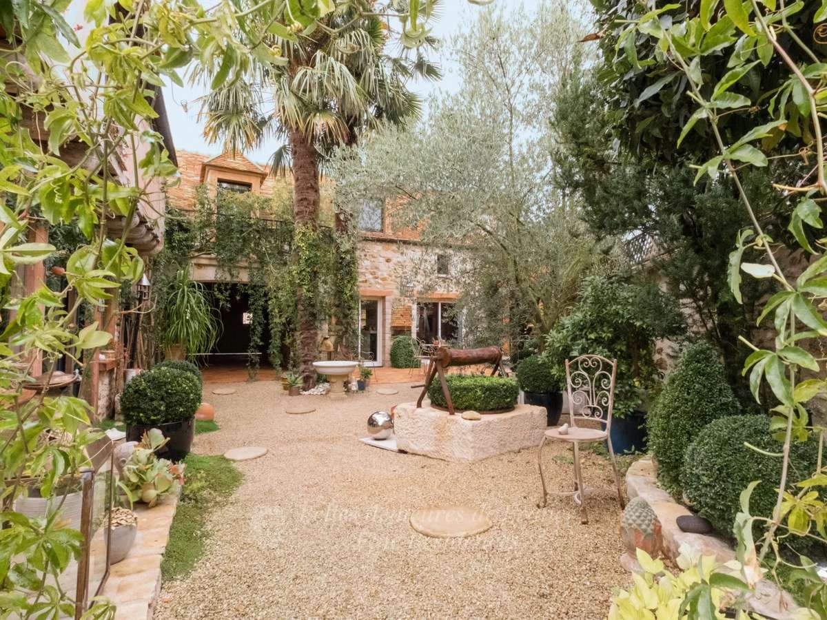 le jardin paysager est parfaitement entretenu, alimenté en eau par un puits, et offre à cette bâtisse un écrin de verdure luxuriante.