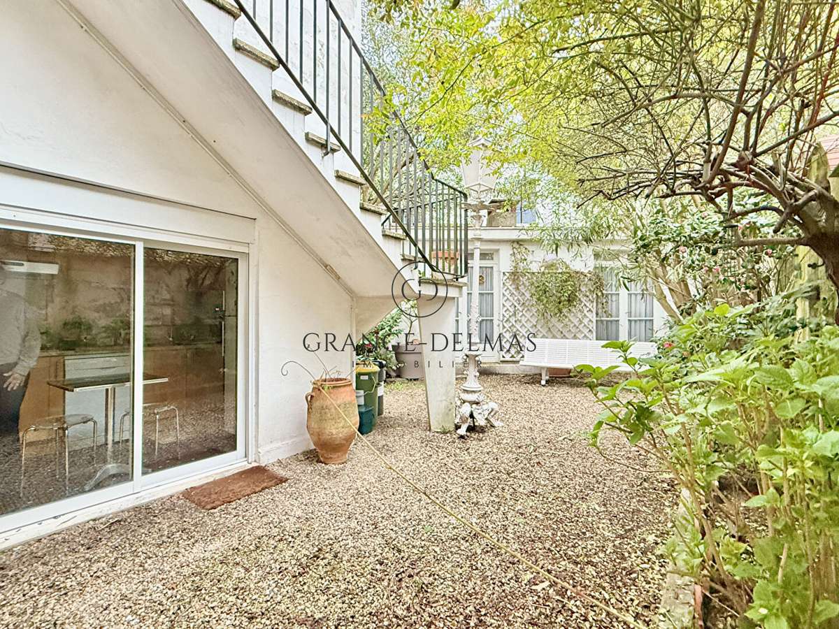 Au rez-de-chaussée, l'entrée distribue une première pièce de réception sur rue, un palier et un agréable salon bibliothèque ouvrant de plain pied sur la jardin bien exposé.