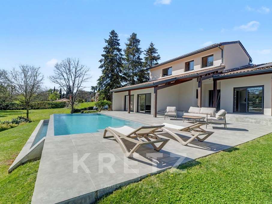 Villa T8 255m2 rénovée dans un parc arboré de plus de 2000m2, bordé par un ruisseau, piscine à double débordement, sous-sol intégral aménagé en pièces loisirs, garage, 2 terrasses.