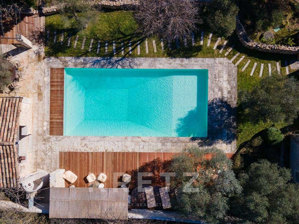 Ce mas en pierre du XVIIIe siècle situé au coeur d'une parcelle d'environ 2 500 m2, a été entièrement rénové avec exigence par des artisans locaux, et a su préserver toute l’authenticité et l’âme de la Provence : pierres anciennes, cyprès, oliviers centenaires, fontaine, terrasse ombragée par une glycine…