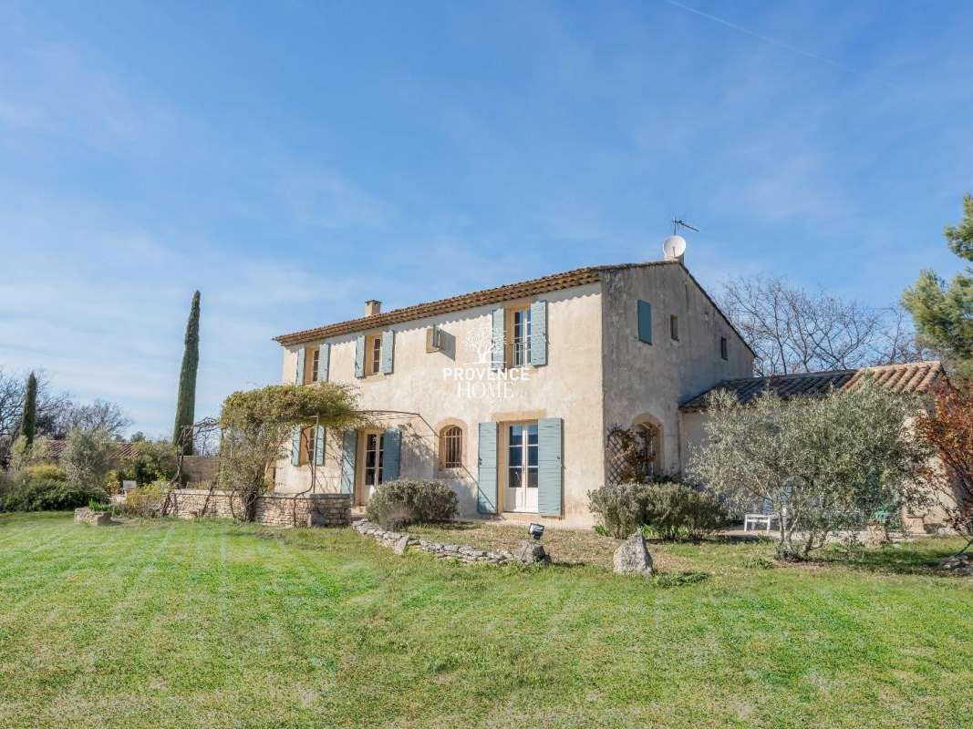 Cette belle demeure, d'une surface habitable d'environ 210 m², est établie sur un terrain non clos de 5520 m², orné d'essences typiquement provençales et d'oliviers.