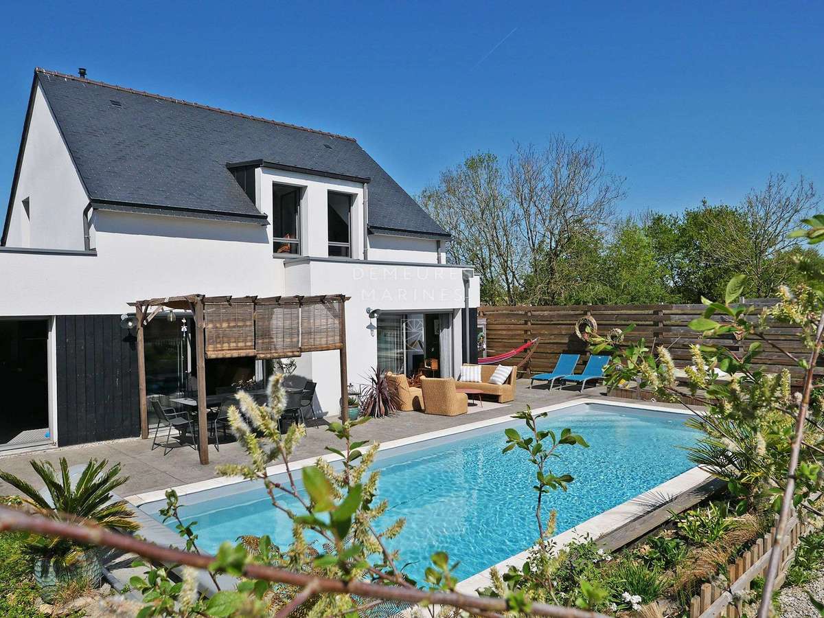 Demeures Marines vous dévoile en exclusivité « Oscar », une lumineuse maison contemporaine d'environ 135 m² située à Landaul, à proximité immédiate de Locoal-Mendon et des rives préservées de la Ria d'Étel.