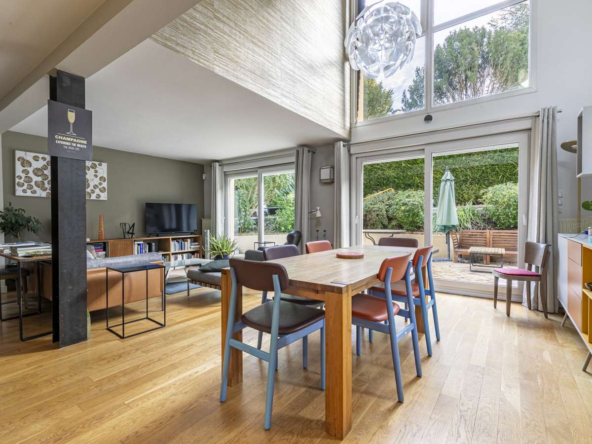 La configuration de la maison permet également l'aménagement d'un espace de télétravail idéal, que ce soit sur la mezzanine offrant une vue dégagée sur le séjour cathédrale, ou dans une pièce en rez-de-jardin, garantissant calme et indépendance.