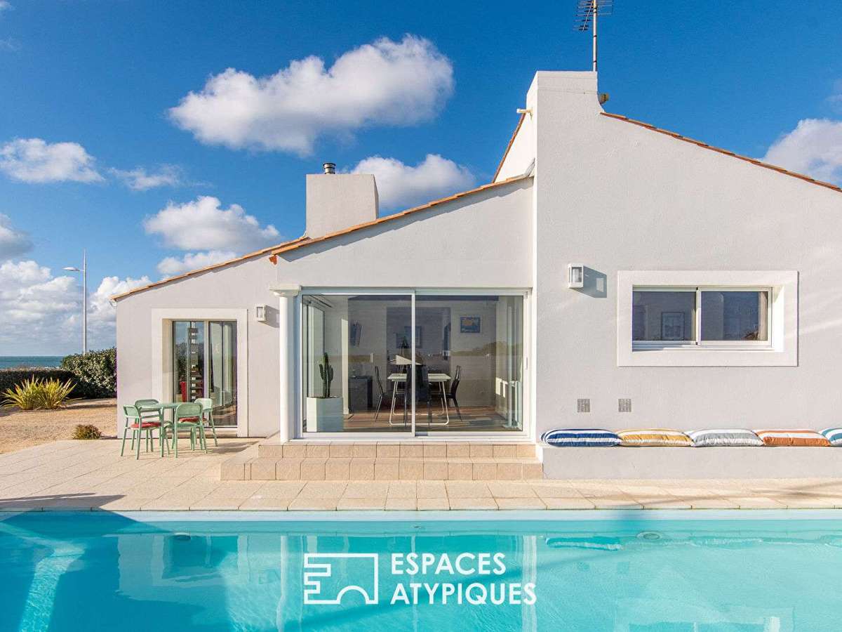 Cette villa contemporaine de plain-pied, développant 183 m² et s'étend sur une parcelle de 1 645 m² face à l'océan, sur la côte ensoleillée des Sables-d'Olonne, quartier de La Pironnière.