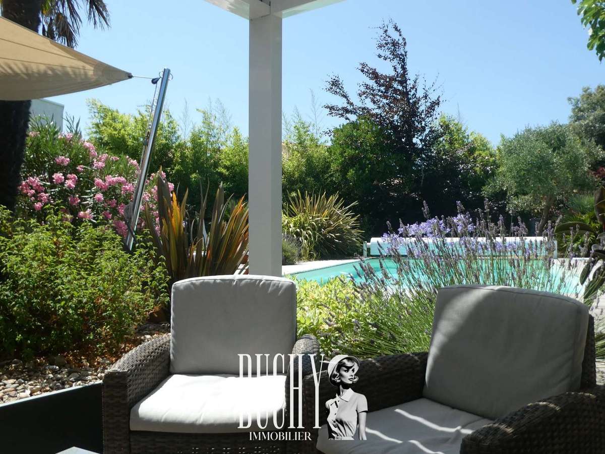 Une piscine bordée de terrasses invite à la détente, tandis que le pool house et le carport viennent parfaire les prestations de cette propriété.