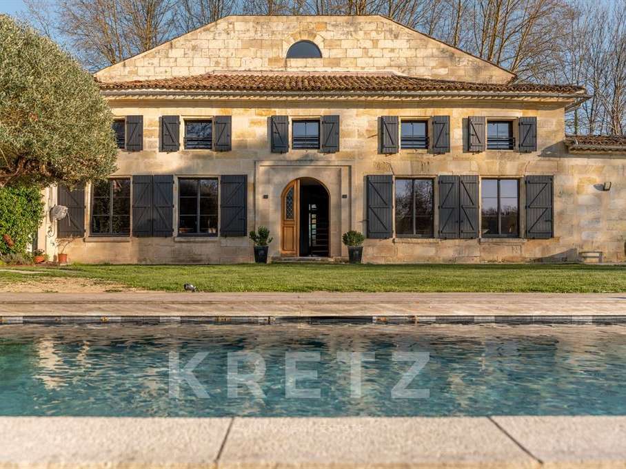 À 3 km de Libourne et 30 minutes de Bordeaux, au cœur du Fronsadais, ce domaine de caractère s’étend sur près de 7,8 hectares et révèle une élégante maison de maître en pierre, élevée sur deux niveaux et entièrement rénovée avec des matériaux nobles, offrant environ 605m² habitables.