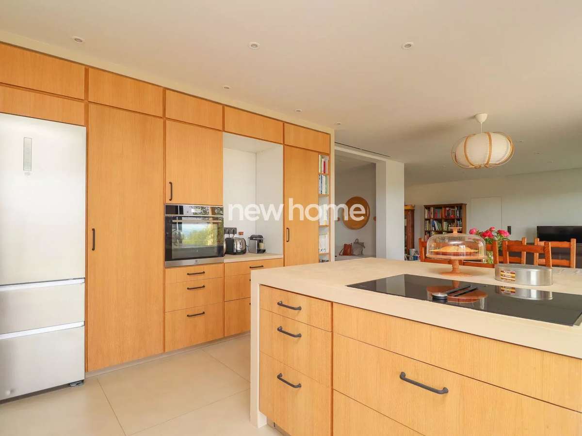 De larges baies vitrées à galandage prolongent cet espace vers une terrasse couverte et le jardin, offrant une continuité dedans-dehors et un panorama exceptionnel depuis l’ensemble du rez-de-chaussée.Une première suite de plain-pied dispose de son dressing et de sa salle de bains avec douche et toilettes.