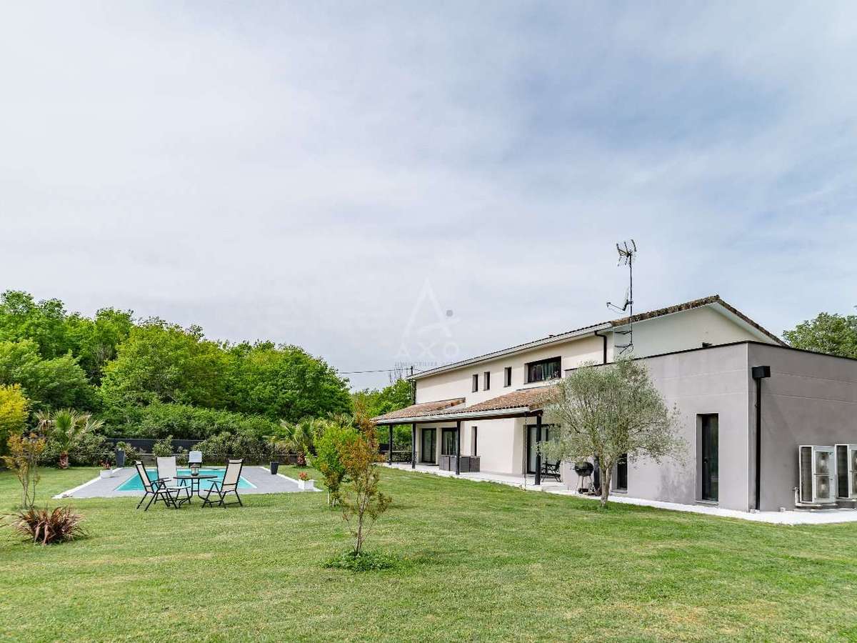 Bâtie en 2014 de manière très traditionnelle, elle offre 290m² habitables ultra fonctionnels: - En rez de chaussée, une vaste entrée de 21m², avec WC indépendant (lave mains et douchette), communique avec la cuisine semi ouverte de 26m², aménagée et équipée (celllier-buanderie attenant de 12m²) et le séjour de 55m² lumineux à souhait grâce à sa triple exposition et ses grandes ouvertures sur la terrasse carrelée en partie couverte de 54m².