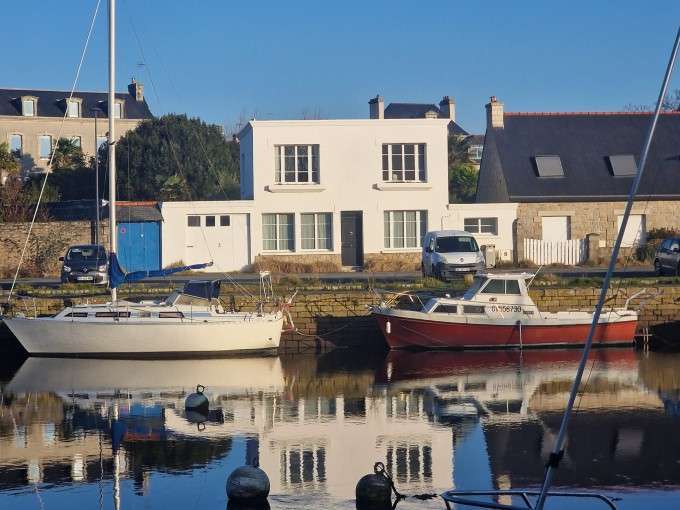 Sur la commune de PONT L'ABBE, Plein centre ville, tout à pied, découvrez cette unique maison aux lignes "art déco" entièrement rénovée de 240 m2 offrant une Vue panoramique sur les bateaux, le port et la ville; Conçue pour accueillir une Famille nombreuse ou Maison d'hôtes, la maison principale offre un grand séjour plein Sud avec cuisine aménagée et équipée et un magnifique poêle à bois pour réchauffer les journées hivernales, un salon tv en retrait du salon principal offre une vue sur la cour intérieure paysagée et sans vis à vis.