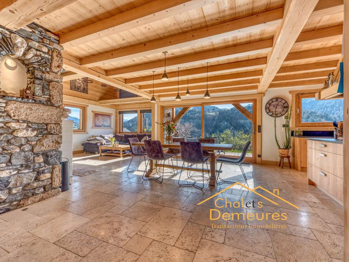 Bénéficiant d'une vue panoramique sur les Massifs et pistes de ski, chalet familial récent de 2017 offrant un bel espace de vie baigné de lumière, volume généreux de 174 m2 habitables composé d'une cuisine équipée avec ilot ouverte sur un séjour double avec poêle à bois, toilette d'invité, vaste terrasse exposé Sud-Est et Sud vous invitant à la détente, 4 chambres dont une master, bureau, garage de 140 m2 générant une surface utile de 326 m2 édifié sur son écrin de verdure de 1355 m2.