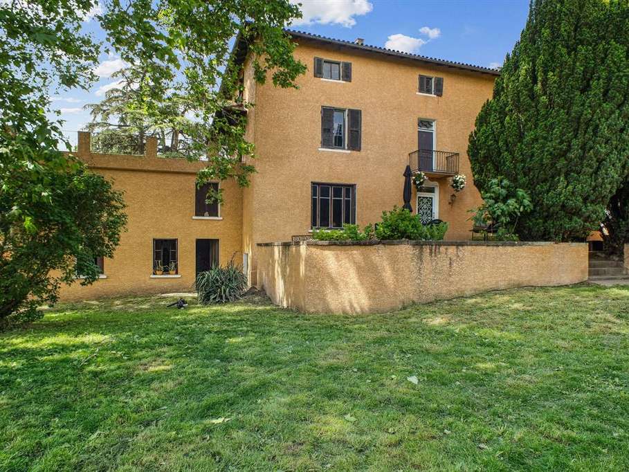 Implantée sur un terrain arboré de 4920m², elle bénéficie d’un grand jardin, d’une spacieuse terrasse de 60 m² avec vue imprenable sur les monts du Lyonnais et sur le Beaujolais, ainsi que de nombreuses annexes : écuries, granges, large porche d’époque et pigeonnier, aménageables selon vos projets.