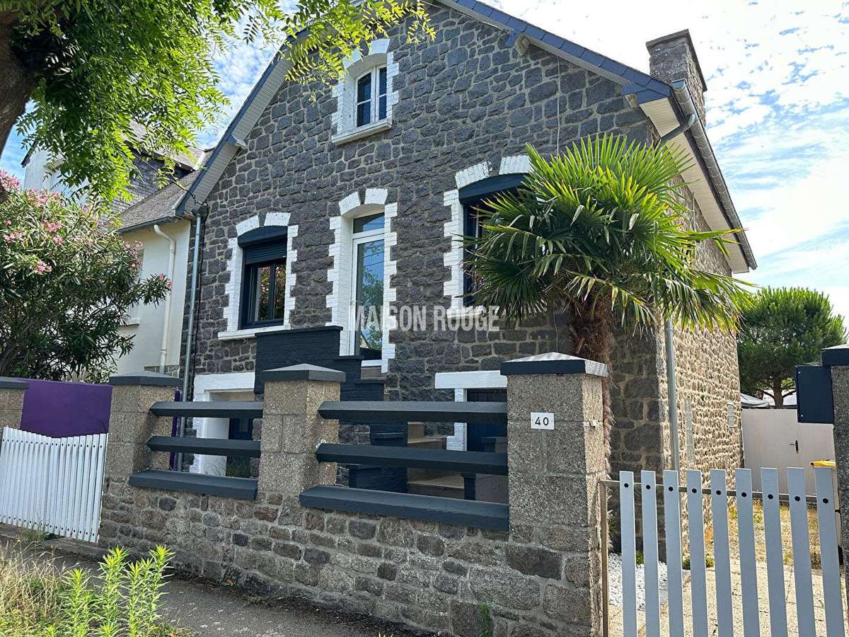 À Saint-Malo, dans le très recherché quartier de Courtoisville, à deux pas de la plage et des commerces, découvrez cette charmante maison en pierre, couverte en ardoises, nichée dans un agréable jardin arboré.